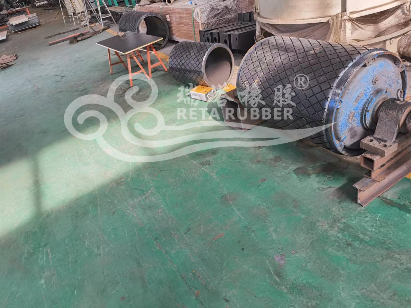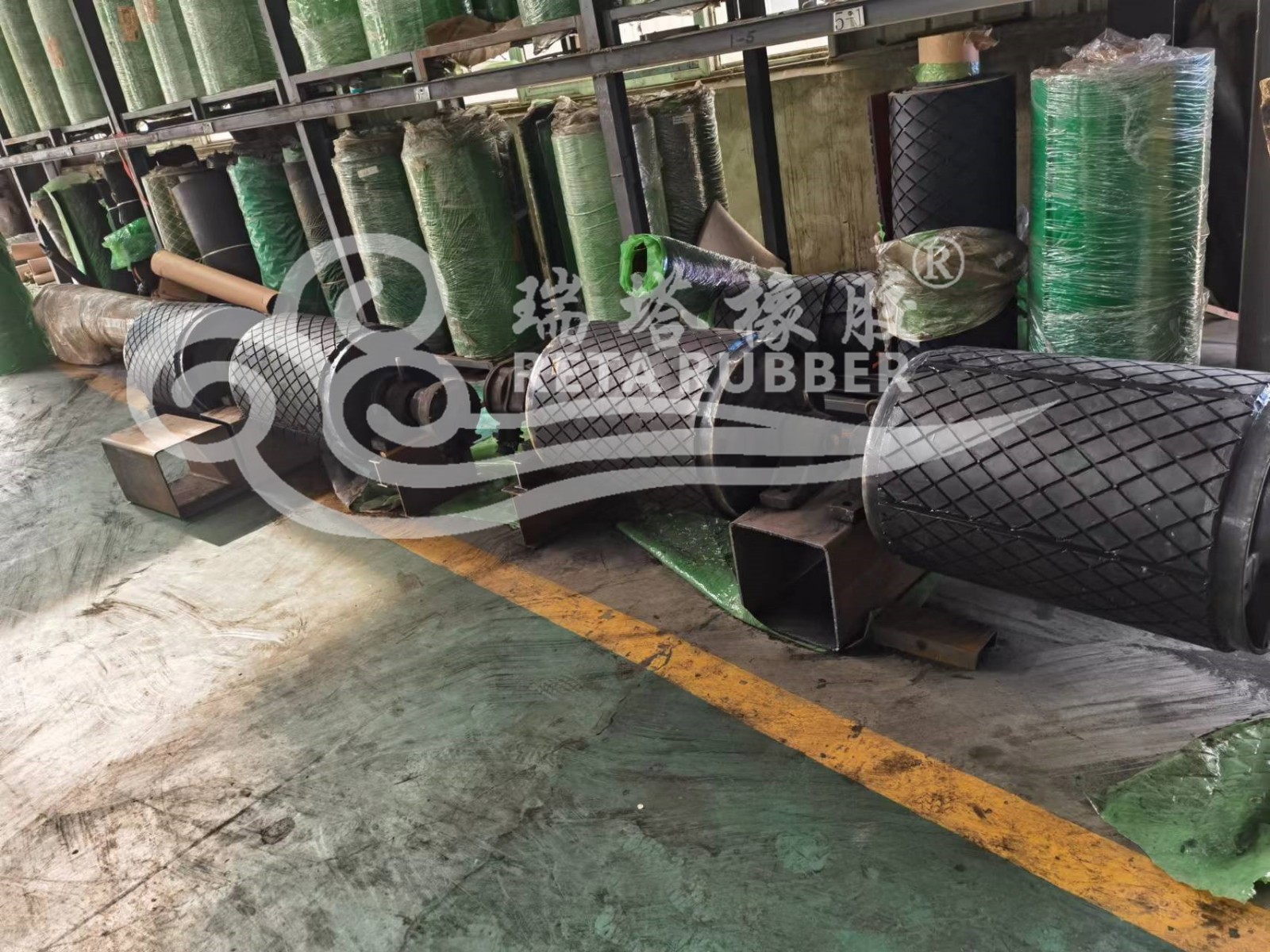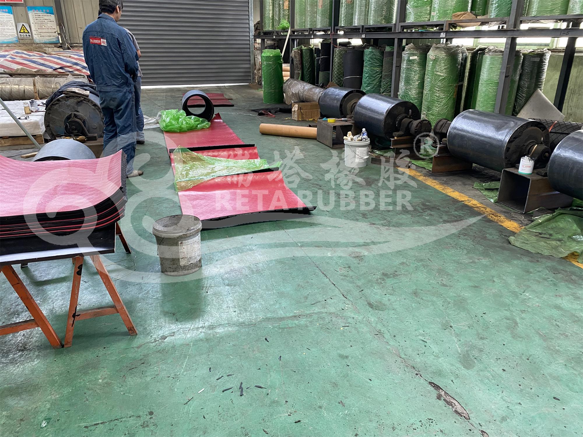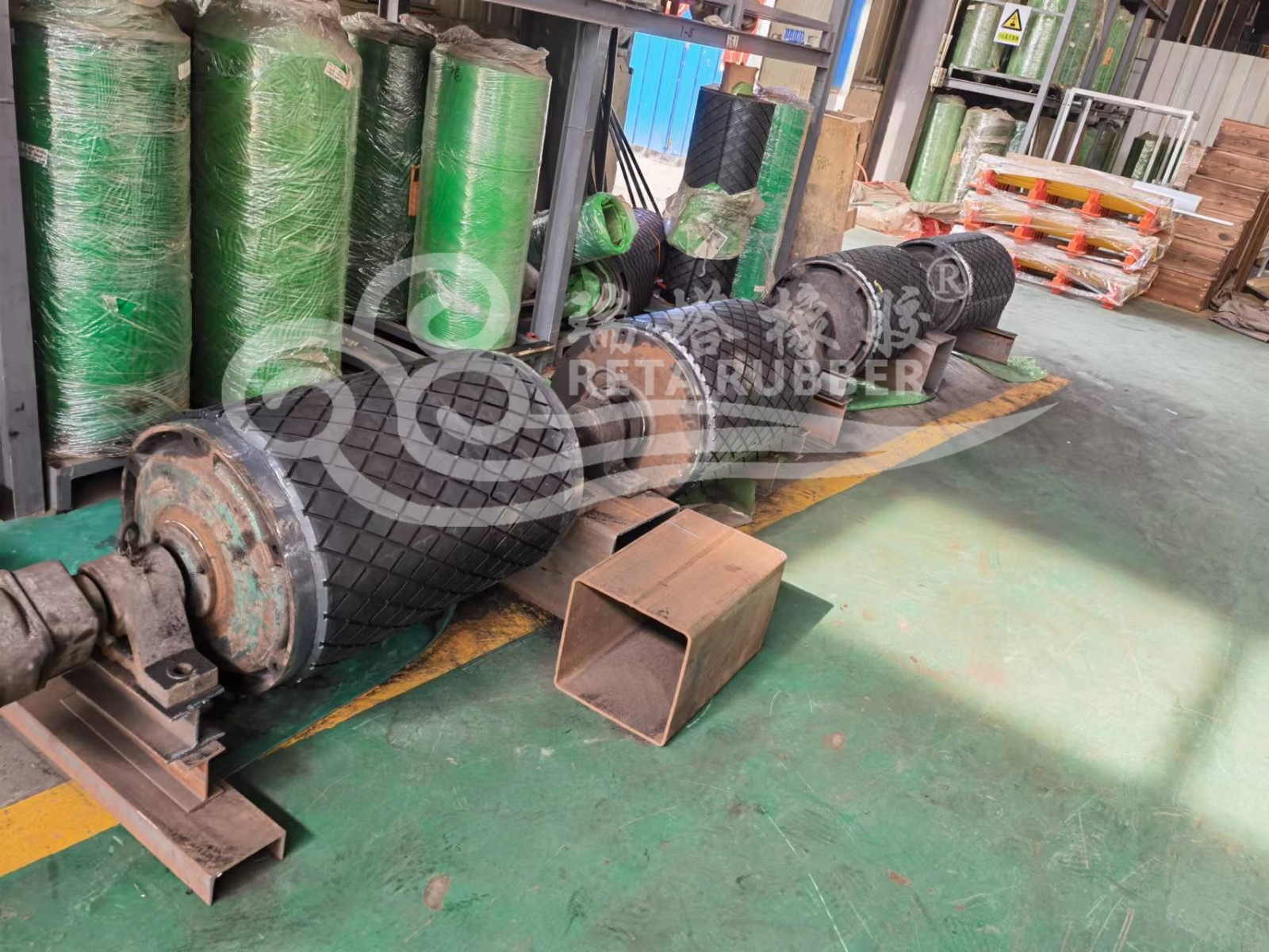 客戶發(fā)到廠內(nèi)滾筒包膠施工完成